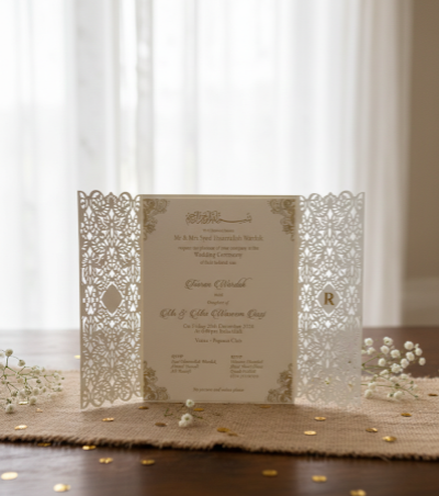 “Elevate your special day with exquisitely laser-cut wedding cards, crafted to perfection in Islamabad. Each design tells a unique love story, blending tradition and modern artistry for an unforgettable celebration. πβ¨ #LaserCutElegance #IslamabadWeddings #CustomInvites”“Add a touch of modern sophistication to your wedding with stunning acrylic wedding cards, beautifully crafted in Islamabad. Sleek, timeless, and uniquely elegant, these cards are the perfect prelude to your big day. π«β¨ #AcrylicElegance #IslamabadWeddings #LuxuryInvites”“Celebrate your love with the timeless charm of maroon wedding cards, elegantly designed in Islamabad. Rich in color and tradition, these cards set the perfect tone for your special day. β€οΈβ¨ #MaroonMagic #IslamabadWeddings #ElegantInvites”